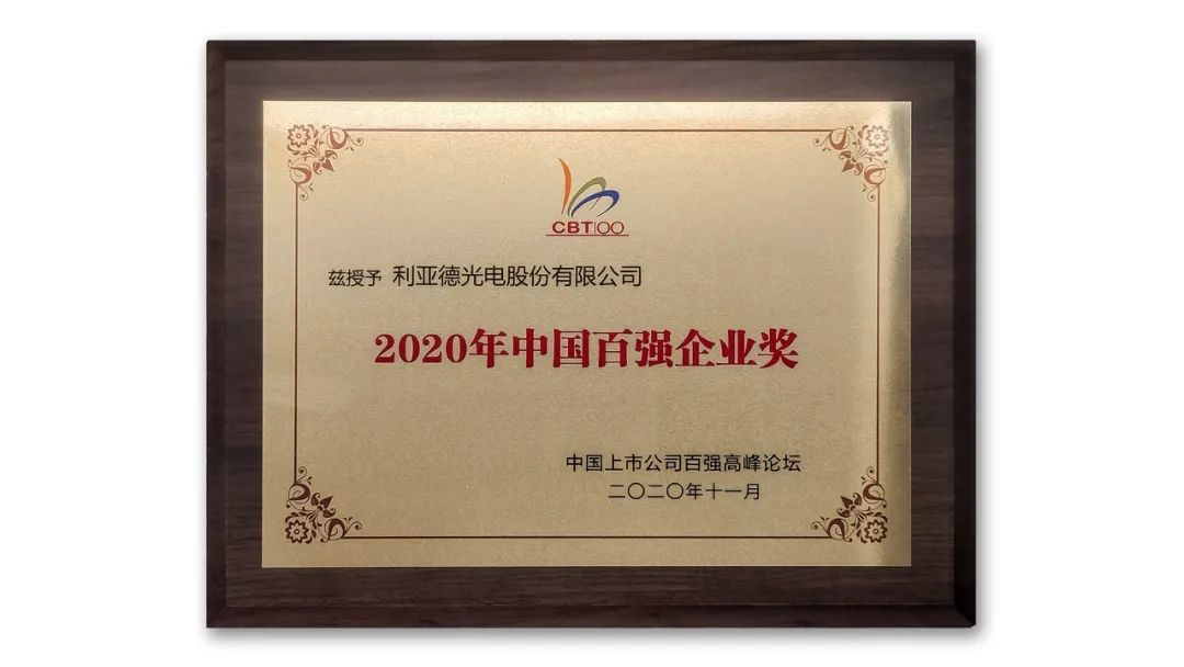 利亞德獲頒“2020年中國百強企業(yè)獎”