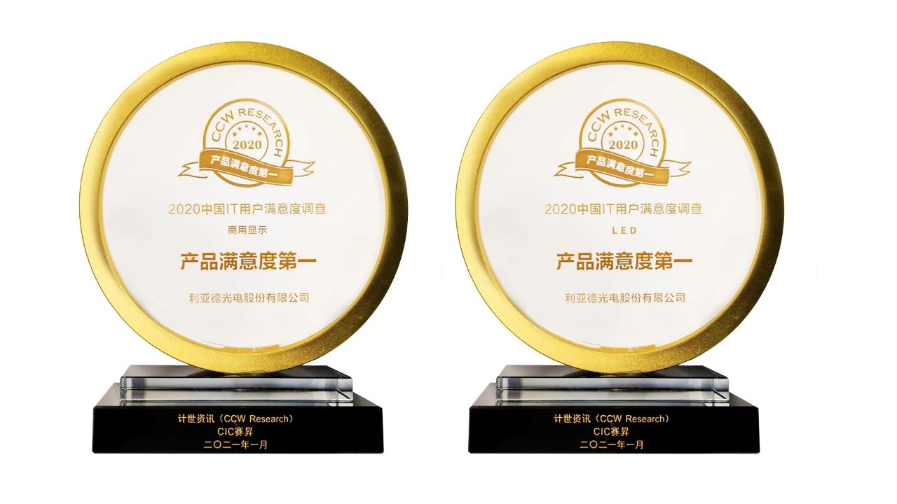 日前,由國家工業信息安全發展研究中心指導、中國質量協會用戶委員會支持、計世資訊(CCW Research)主辦的“2020中國IT用戶滿意度大會”完美收官。會上發布《2020年中國IT用戶滿意度報告》,并發布“第十九屆中國IT用戶滿意度成果”。利亞德憑借領先的技術和優質的服務,連續三年蟬聯“LED產品滿意度第一”、“商用顯示產品滿意度第一”兩項大獎。