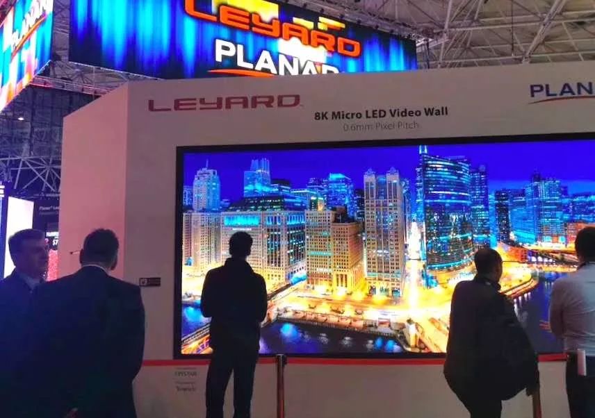2020年美國CES展,利亞德展出“THEGREATSPACE”216吋8KMicroLEDTV和120吋8KLCDAISmartTV;2020年荷蘭ISE展,利亞德再次展出0.6mm微間距的8KMicroLEDVideoWall,成為目前市場上可量產(chǎn)的面積最大,像素間距最小的MicroLED顯示屏。