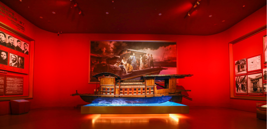 在中國共產(chǎn)黨“一大”會址實景展示區(qū),由LED顯示屏打造的波光粼粼的水面上,“一葉紅船”把大家的思緒帶回中國共產(chǎn)黨誕生的那段歲月……
