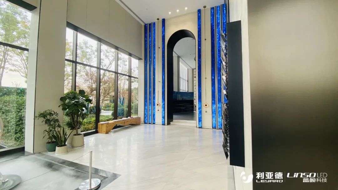 利亞德為上海金鼎天地地產展示區域打造以5G高速發展動態為主題內容的條形數字顯示入口,奠定新型智慧城市泛在感知系統展示區的數字化基調。