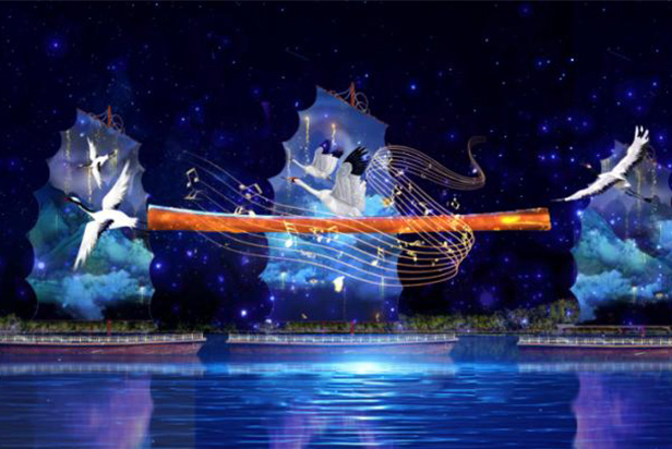 虛擬與現實相結合的漯河元宇宙燈光世界,將光影藝術與多重科技融為一體,讓觀眾與數字人漯漯攜手穿越九千年歷史,從新石器時代的賈湖遺址一路走向未來